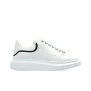 For a bold, contemporary look with a touch of street edge, the Alexander McQueen Oversized Sneaker in 'White Black Stripe' is the perfect choice. This design features a crisp white leather upper, complemented by a striking black stripe along the side for a modern, graphic touch. The contrast of the clean white and bold black creates a sleek, elevated style that works seamlessly with both casual and tailored outfits.