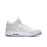 The Jordan 3 Retro "Pure White" (2018) is a clean and minimalist take on the iconic silhouette. This sneaker features a pristine all-white leather upper, offering a sleek and versatile look. The subtle use of texture on the leather adds depth, while the classic elephant print appears on the toe and heel for that signature Jordan flair.