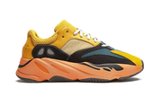 There Adidas Yeezy 700 Sun presents an upper in mesh embellished with several panels in suede YELLOW. There are several touches of black on the quarter panel darken the design. An orange sole with technology Boost Complete this colorful iteration!